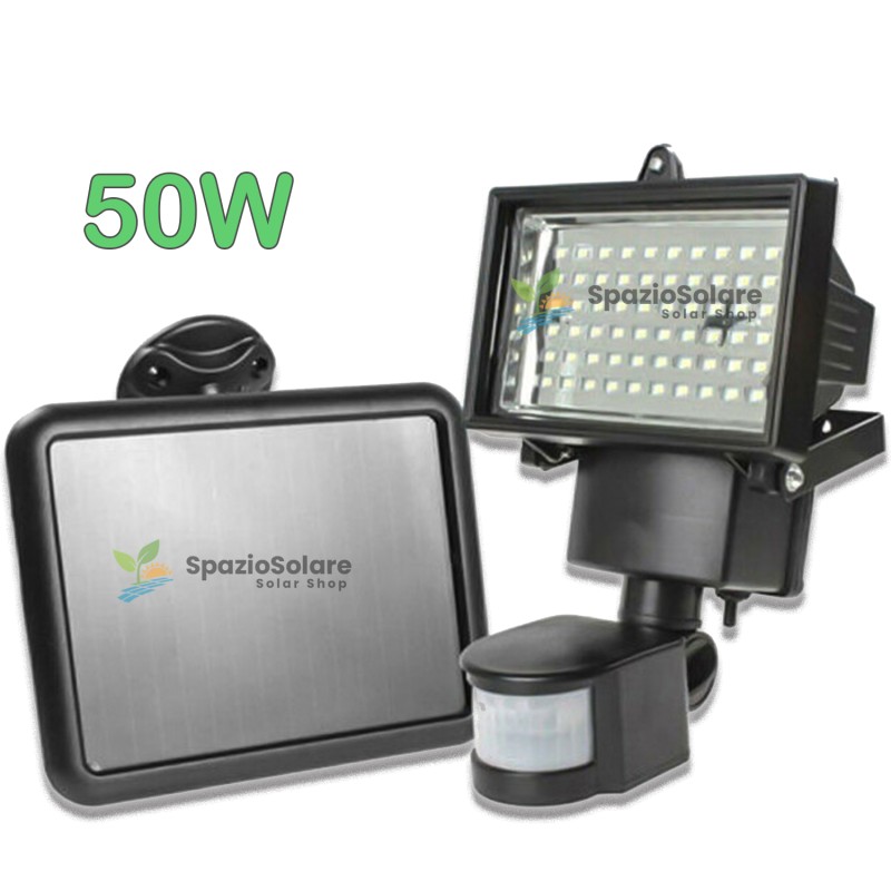 faro faretto 50 w led pannello energia solare fotovoltaico crepuscolare batteria